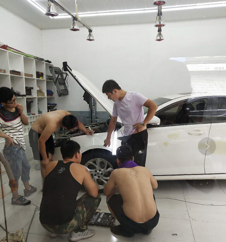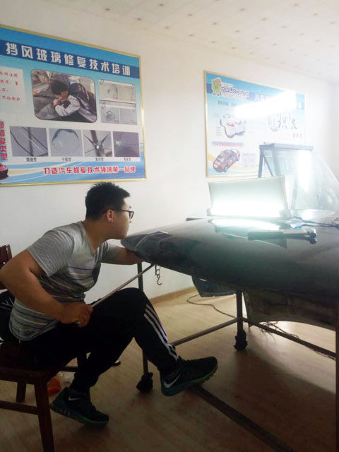 皇菠蘿汽車凹陷修復(fù)學(xué)員在練習(xí)修復(fù)小坑